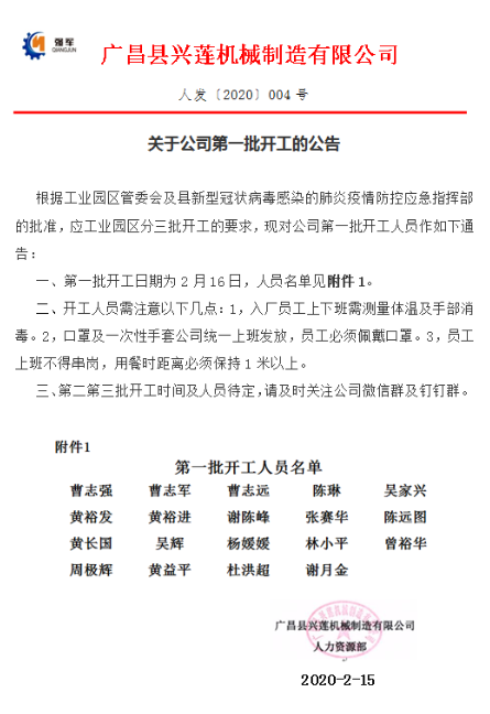 聯(lián)系我們2020年興蓮機械已開(kāi)工 |